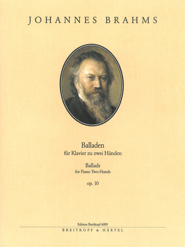 Brahms widmete seine vier Balladen op. 10 Julius Otto Grimm zu dessen Verlobung mit Philippine Bitmüller, der Tochter des Göttinger Klavierfabrikanten (dessen „englische“ Flügel Hans von Bülow schätzte). Der Verlag Bartholf Senff in Leipzig, dem Brahms die Balladen anbot, lehnte sie ab. Dank der Vermittlung Clara Schumanns erklärte sich der Verlag Breitkopf & Härtel in Leipzig am 25. Oktober 1855 bereit, das Werk zu einem Honorar von 8 Louisdors, wie Clara Schumann vorgeschlagen hatte, anzunehmen. Am 29. Februar 1856 hielt Brahms das gedruckte Exemplar in Händen.