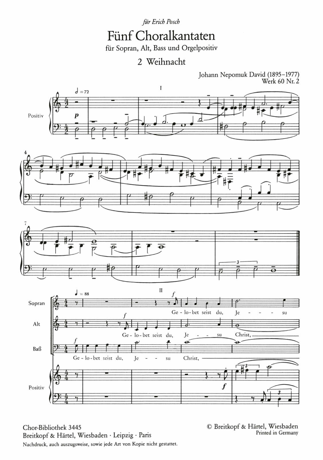 Johann Nepomuk David (1895–1977) 5 Choralkantaten Werk 60