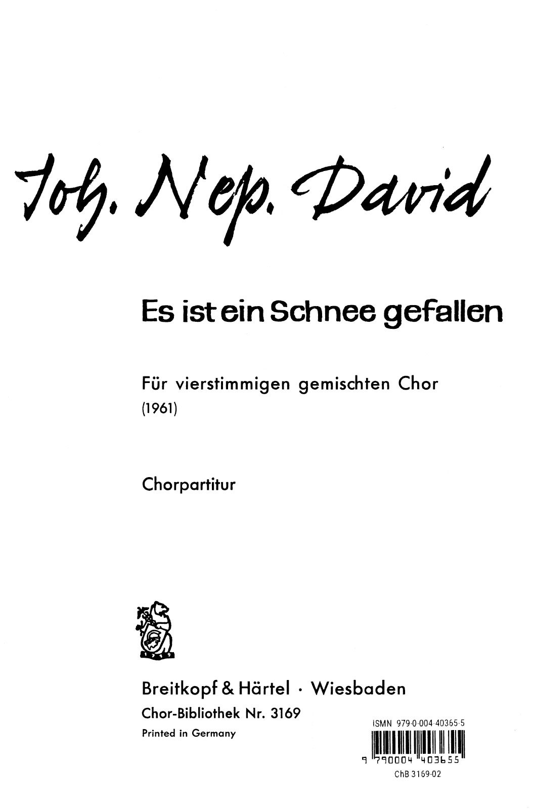 Johann Nepomuk David (1895–1977) Es ist ein Schnee gefallen
