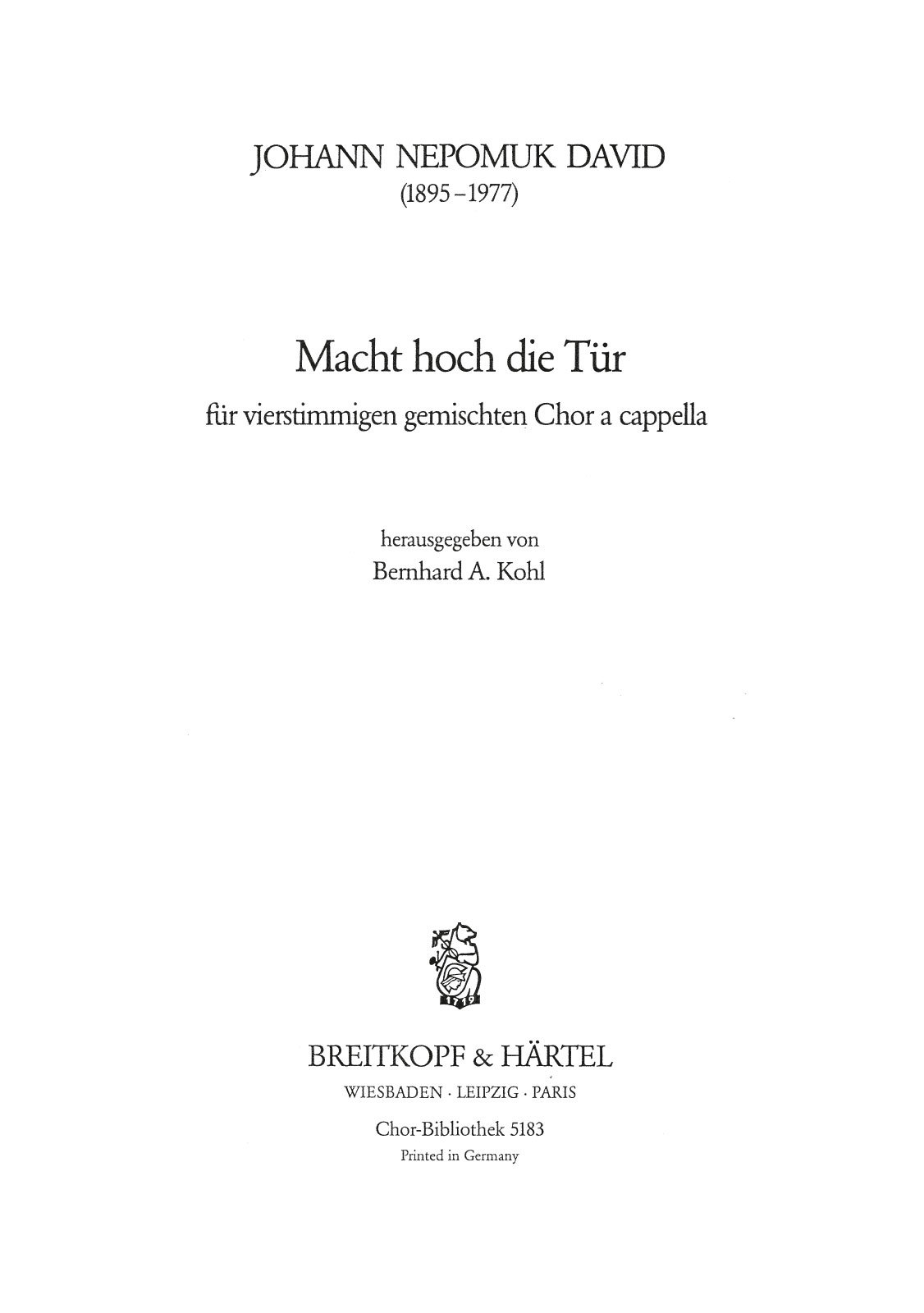 Johann Nepomuk David (1895–1977) Macht hoch die Tür