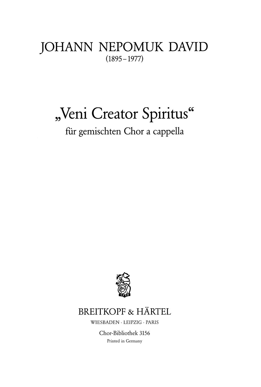 Johann Nepomuk David (1895–1977) Veni Creator Spiritus