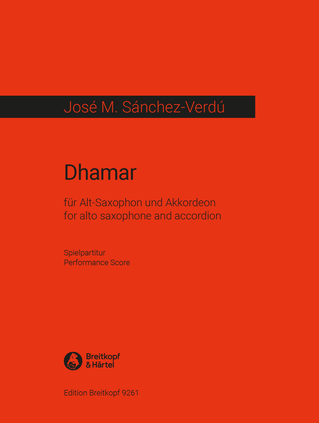 Dhamar ist für zwei Instrumente komponiert, die viel miteinander verbindet. Das Stück erlebt die Konfrontation von zwei Individualitäten; gleichzeitig aber können beide Instrumente so intim miteinander verschmelzen, dass sie nicht mehr zu trennen sind: sie versuchen, als Soli und als Duo, sich zu einem neuen Instrument zu entwickeln. Aus dieser Konfiguration entsteht eine Reise voll mit intimen und poetischen, farbigen und rhythmischen Komplexitäten.