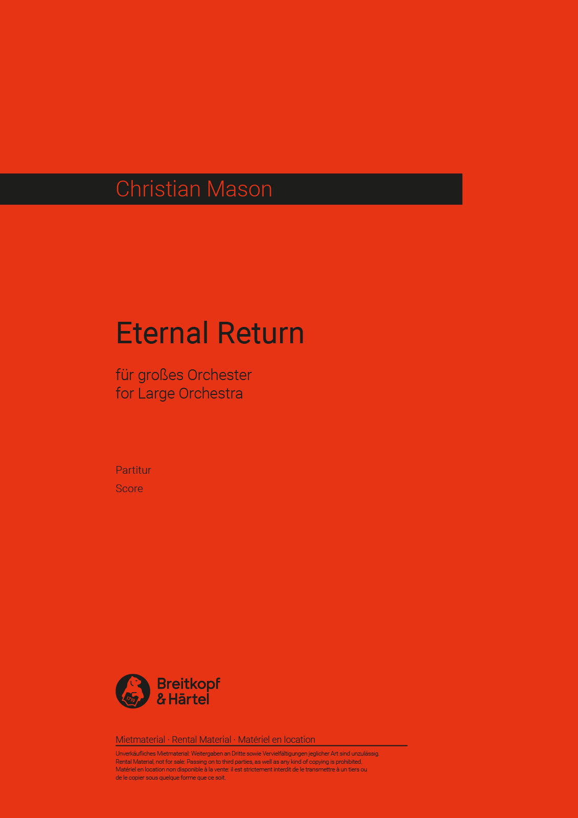 „In Eternal Return setzt sich die Musik aus vielen kurzen, sich wiederholenden Melodie- und Tonleiter-Fragmenten zusammen. Sie werden in vielen Schichten aufgebaut, die sich mit verschiedenen Geschwindigkeiten bewegen, um übergreifende, glitzernde Texturen zu schaffen. Auf einer tieferen und vielleicht auch relevanteren Ebene steht jedoch die philosophische Frage, was Zeit bedeutet und wie wir sie erfahren, und darüber hinaus die Frage, ob (und wie) wir die Grenzen der Zeit überschreiten oder in einen Bereich dahinter gelangen können, wenn auch nur für einen nicht zu definierenden Augenblick. Natürlich definieren wir, wenn wir komponieren, praktisch gesehen die klangliche Aktivität innerhalb eines bestimmten Zeitrahmens. Andererseits ist aber eine Besonderheit der Musik – und dies ist vielleicht sogar einzigartig – die Art und Weise, wie sie uns manchmal aus der Zeit herauszuholen scheint. Ich glaube, das ist es, was ich mit ,Ewigkeit‘ meine: nicht ,eine sehr lange Zeit‘, sondern eher einen Zustand der ,Nicht-Zeit‘, die aus einem Zeitstrom hervorkommen kann.“