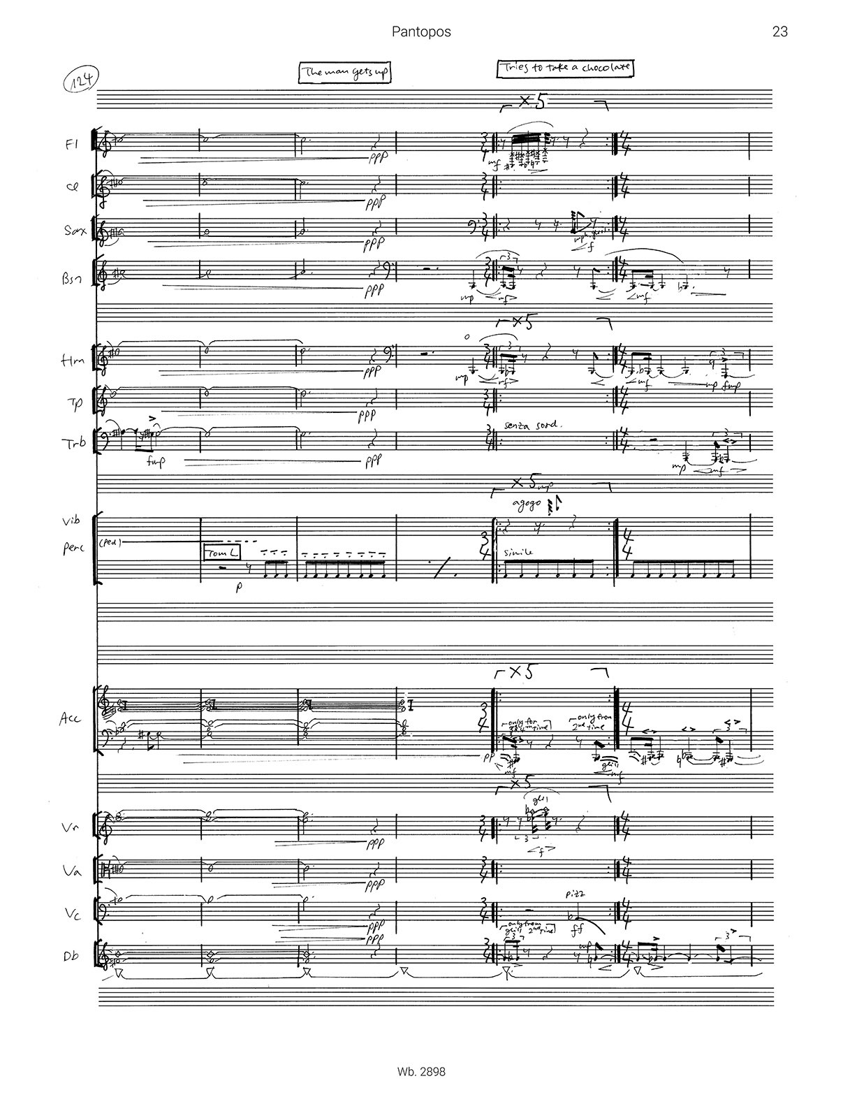 Fl.Klar.T-Sax.Fg – Hn.Trp.Pos – Schl – Akk – Vl.Va.Vc.Kb – Elektronik