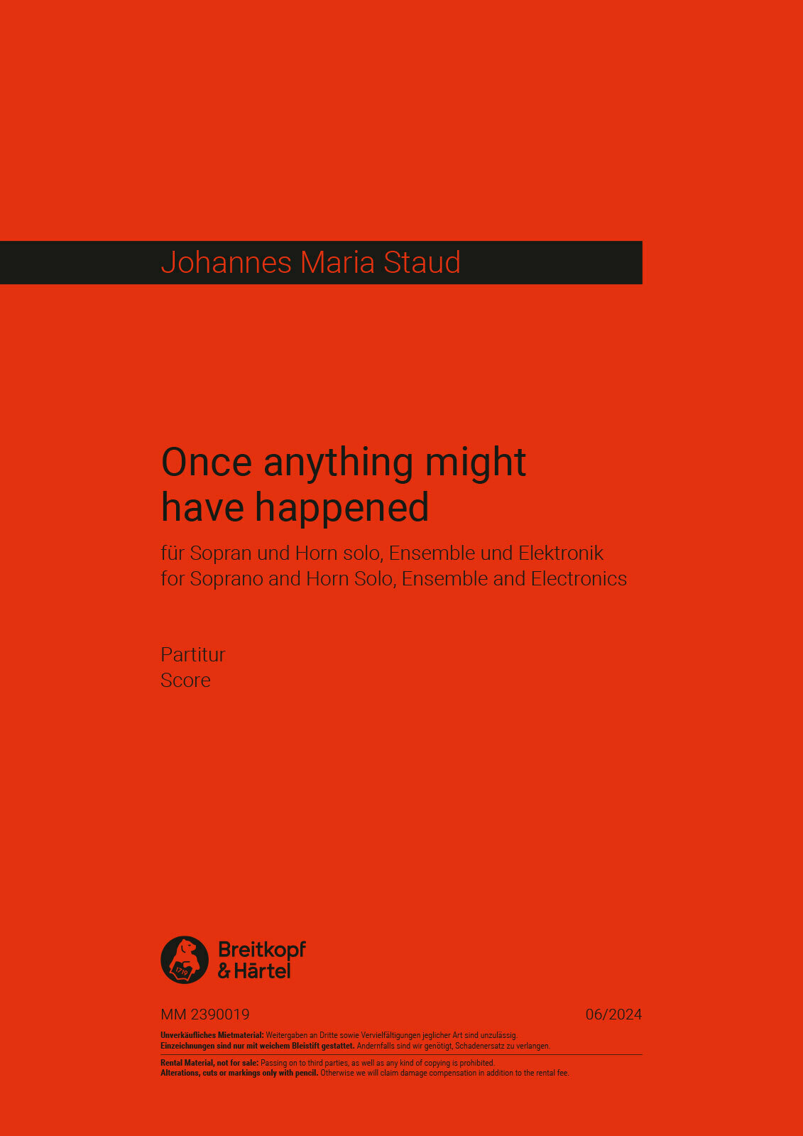 Soli: S – Hn – Fl(Picc.A-Fl).Ob(Eh).Klar.B-Klar.Fg(Kfg) – Trp.Pos.Tuba – 2Schl – Cel.Klav – 2Vl.Va.2Vc.Kb – Elektronik