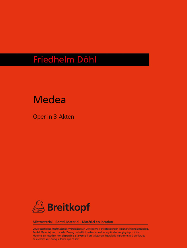 Personen: Medea (Sopran/Mezzosopran) - Phryxus (Bariton) - Jason (Bariton) - Aietes (Bass) - Absyrtus (Sprechrolle/Sopran) - Kreon (Bass) - Kreusa (Sopran) - 2 Herolde (Sprechrollen) - Medeas Kinder (4 und 6 Jahre) (stumme Rollen)