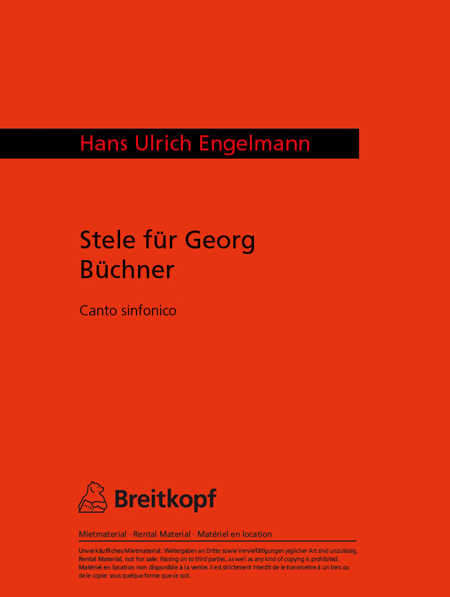 Stele für Büchner fächert sich in kompakte sinfonische Teile und kammermusikalische Partien. Mit dem flächig gehaltenen Chorsatz dominieren zeitweilig die Orchesterverläufe im Gesamtwerk, daher der Untertitel Canto sinfonico für Alt, Bariton, gemischten Chor und großes Orchester.
