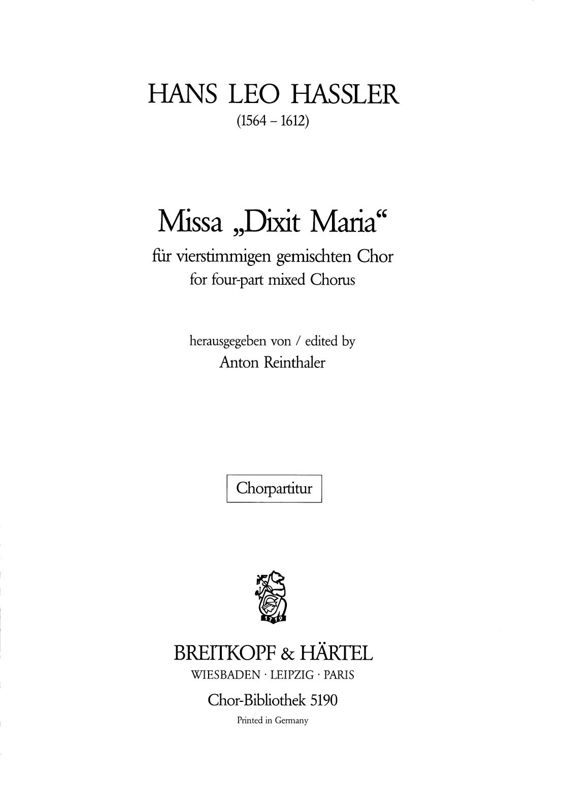 Hans Leo Hassler (1564–1612) Missa „Dixit Maria“