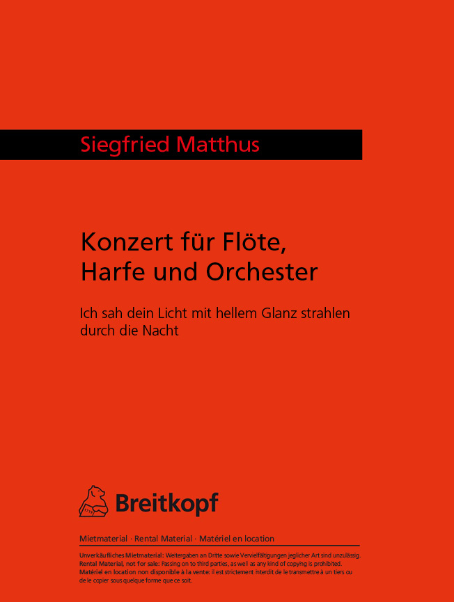 Mit großer Freude habe ich auf Wunsch von Eckart Haupt, dem Soloflötisten der Uraufführung meiner „Cornet“-Oper, und Astrid von Brück ein Doppelkonzert für Flöte und Harfe geschrieben.