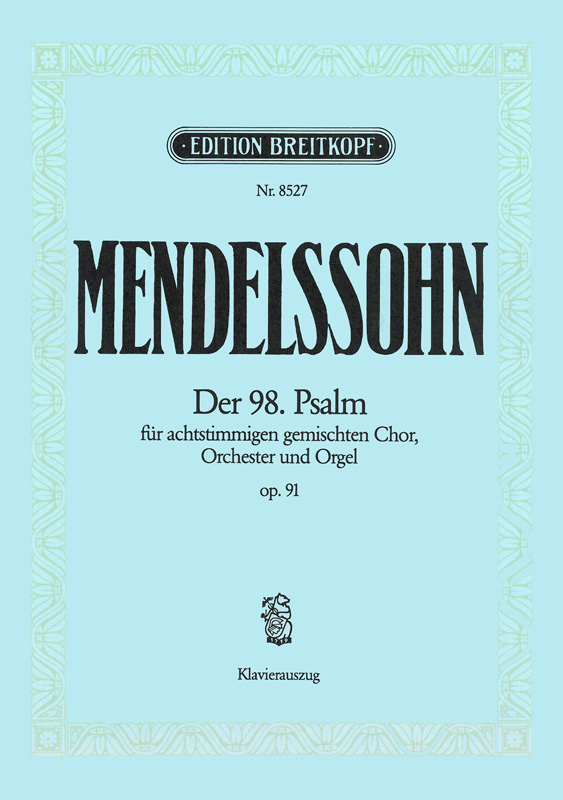 Der 98. Psalm zählt zu den Kompositionen Mendelssohns, die nur schwer einer bestimmten Gattung zuzuordnen sind. So wie die Lobgesang-Kantate Symphonie und Choral-Kantate in sich vereinigt, finden in der Vertonung des 98. Psalms Motette und Kantate zu einer ausdrucksstarken Verbindung. Das Werk beginnt achtstimmig a cappella und mündet in einen kraftvollen Orchestersatz. Neu - und zu Mendelssohns Zeiten aufsehenerregend - war die Verwendung der Harfe in der romantischen Kirchenmusik. Der von Mendelssohn selbst erstellte Klavierauszug wurde für den einleitenden a cappella-Chor zu Einstudierungszwecken von Michael Obst ergänzt.