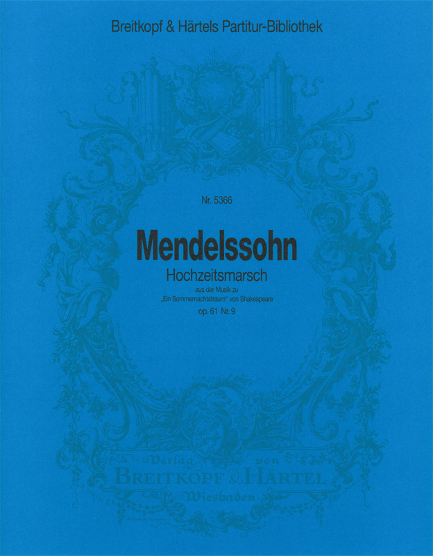 Der Hochzeitsmarsch, Nr. 9 aus der Schauspielmusik, ist hier als Aufführungsmaterial auf Basis der Edition von Christian Martin Schmidt in der Leipziger Mendelssohn-Ausgabe erhältlich.