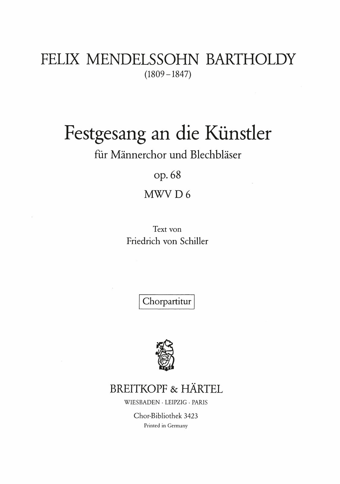 Felix Mendelssohn Bartholdy (1809–1847) Festgesang an die Künstler op. 68 MWV D 6