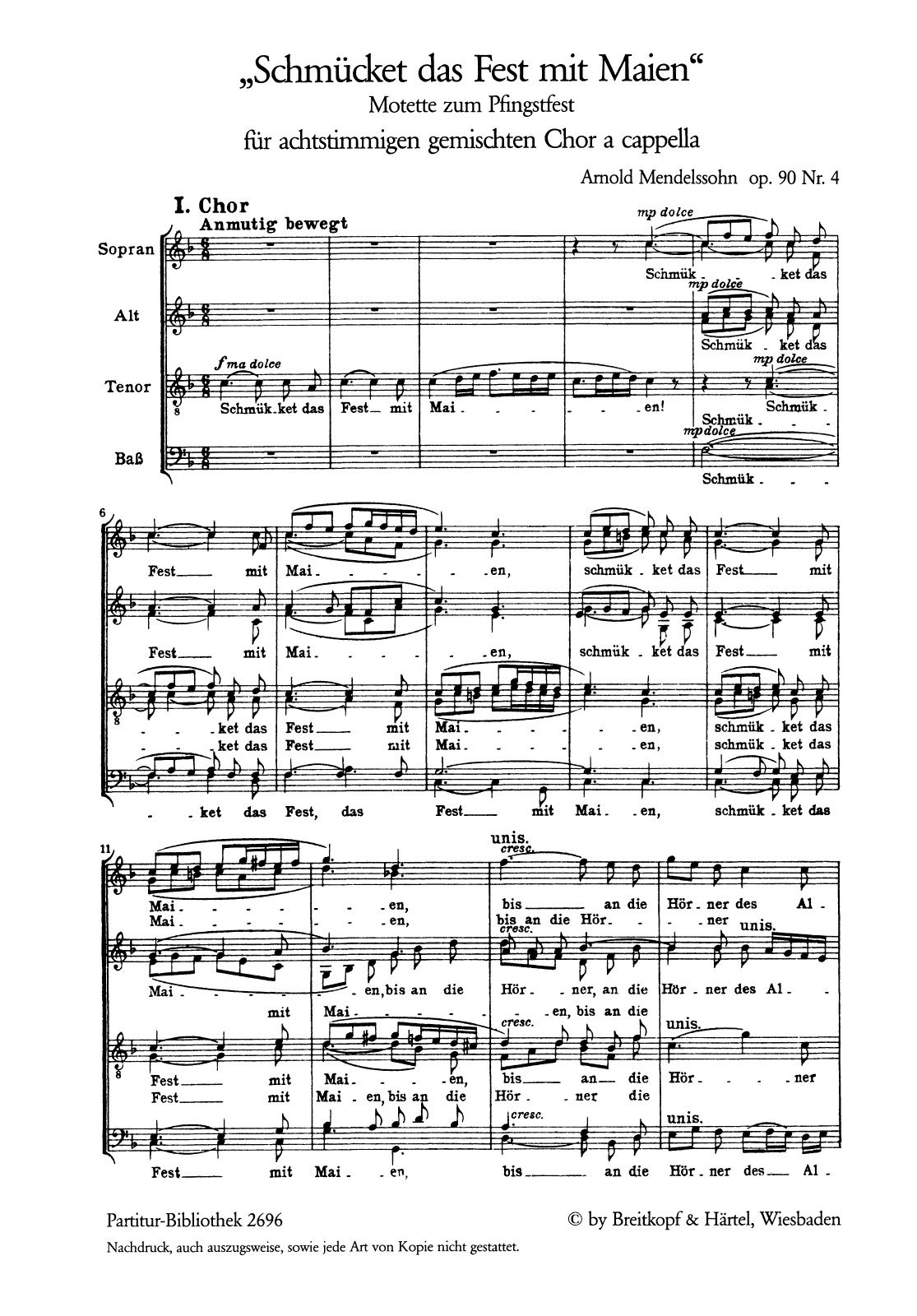 Weitere Motetten von Arnold Mendelssohn finden Sie unter dem Passionsgesang op. 90/1, der Adventsmotette op. 90/5 und der Weihnachtsmotette op. 90/9.