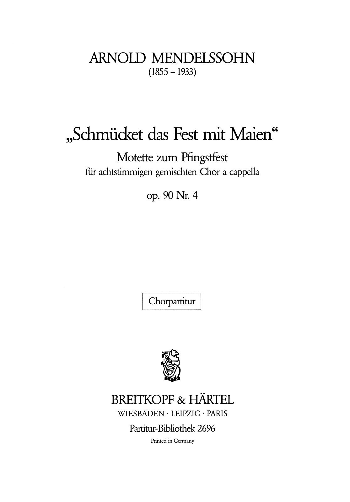 Arnold Mendelssohn (1855–1933) Motette zum Pfingstfest op. 90/4
