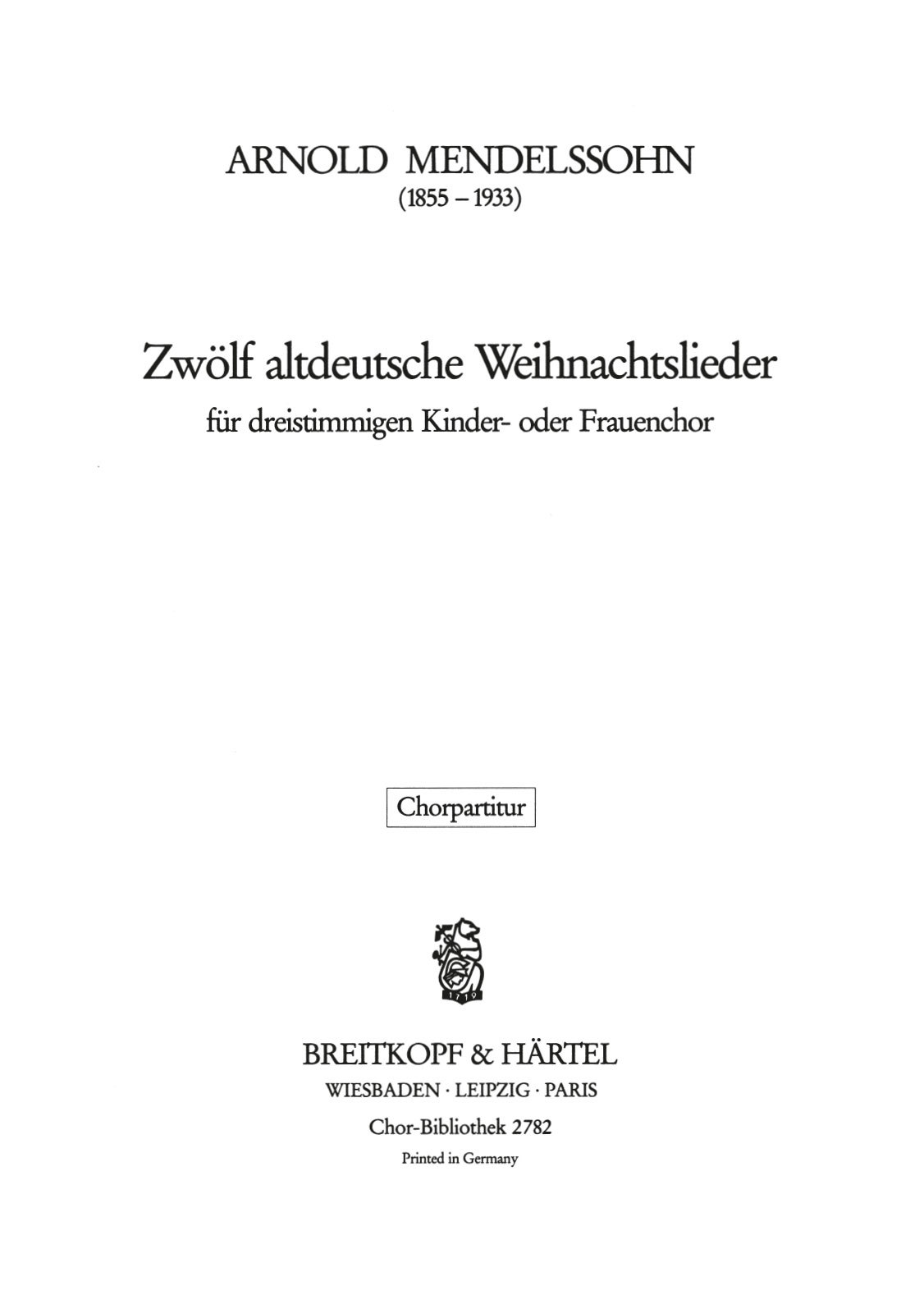 Arnold Mendelssohn (1855–1933) 12 altdeutsche Weihnachtslieder