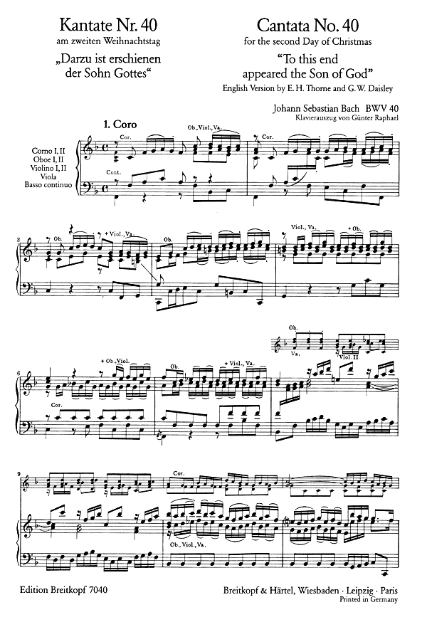 Johann Sebastian Bach (1685–1750) Kantate BWV 40 „Darzu ist erschienen der Sohn Gottes“