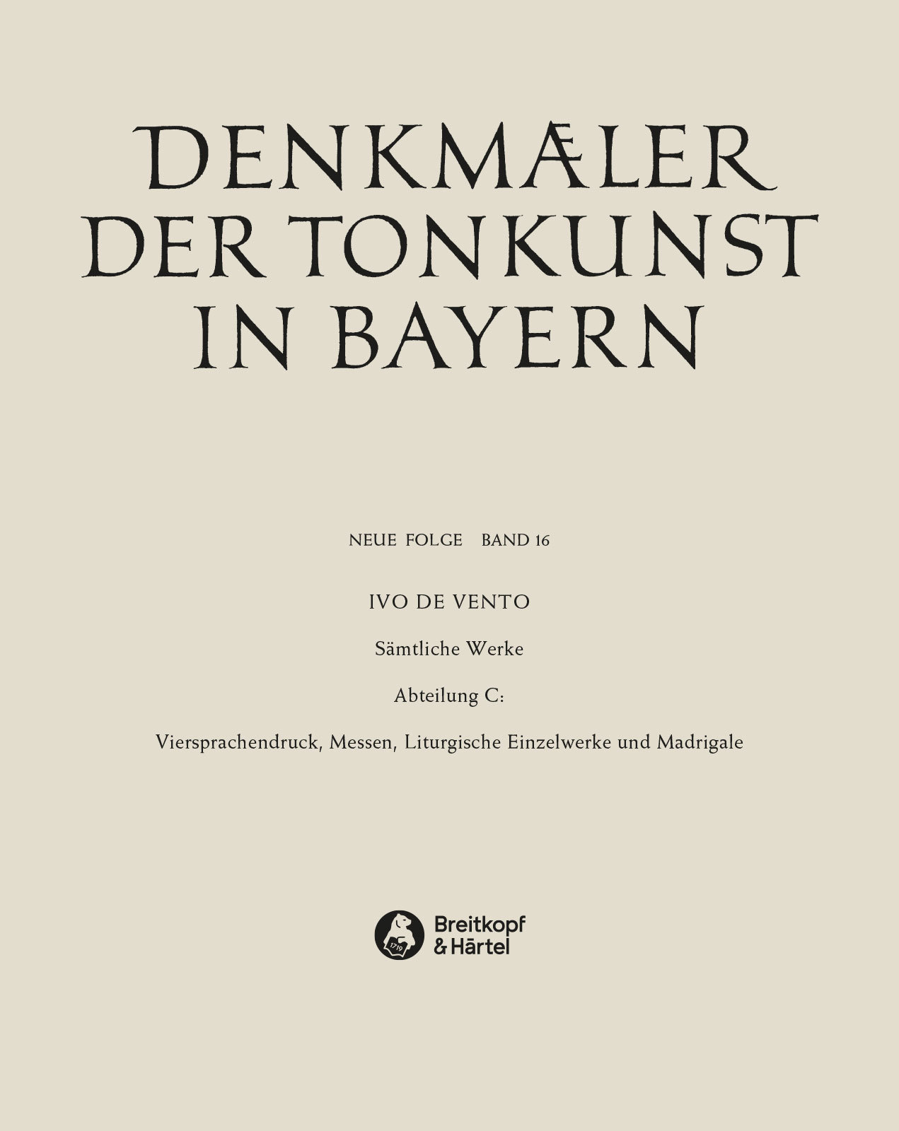 Band 16: Sämtliche Werke, Abtlg. C: Viersprachendruck, Messen, Madrigale und sonstige Einzelwerke