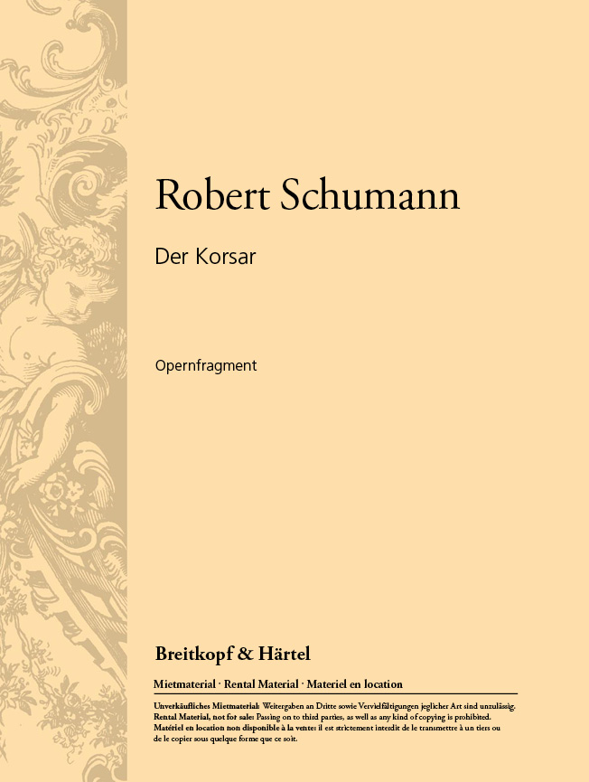 Von einer Ouvertüre ist nichts bekannt, ein einleitender „Chor der Corsaren“, in dem diese - mit ihren Frauen, denn es ist ein gemischter Chor! - in enger textlicher Anlehnung an den Anfang des Byronschen Versepos ihr wildes, ungebundenes Leben auf dem Meer besingen, wurde in vollständiger Partitur niedergeschrieben. Ihm schließt sich, ebenfalls vollständig instrumentiert, ein Nachspiel an, das durch seine zauberhafte romantische Stimmung gefangennimmt. Ein c-uroll Akkord schlägt die harmonische Brücke zur Nr. 2 (Arie des Conrad), die in B-dur steht und mit den für Schumann so typischen punktierten Figuren den Titelhelden als Kämpfernatur zu charakterisieren sucht. Doch schon nach 5 Takten bricht die Partitur ab, von der Singstimme sind noch weitere 6 Takte, am Schluss ohne Text, niedergeschrieben.
