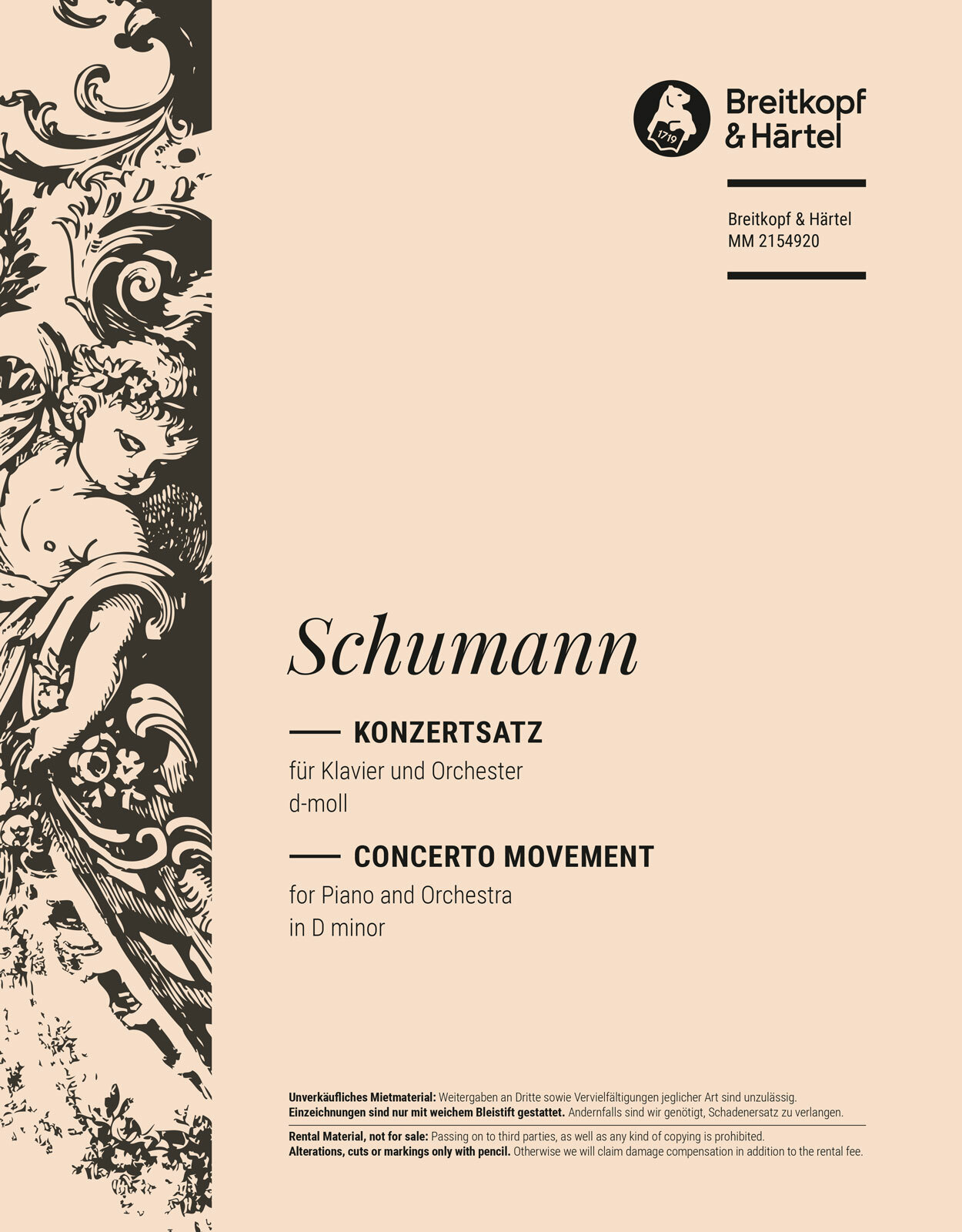 Der belgische Pianist Jozef De Beenhouwer und die Wiener Symphoniker unter der Leitung von Peter Gülke haben 1988 Robert Schumanns Konzertsatz d-moll aus der Taufe gehoben. 1839 weitgehend vollendet, stellt dieses Werk eine wichtige Vorstufe zum bekannten a-moll-Klavierkonzert dar. Jozef De Beenhouwer hat für die viel diskutierte Uraufführung die noch fehlenden Takte stilsischer ergänzt und eine Kadenz geschrieben. Unsere Erstausgabe wird von Joachim Draheim sachkundig betreut.