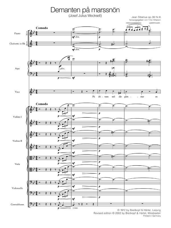 Urtext nach der Gesamtausgabe „Jean Sibelius Werke“ (JSW) herausgegeben von Kari Kilpeläinen und Timo Virtanen [S(Mez),Orch] Dauer: 3' Text: Josef J. Wecksell