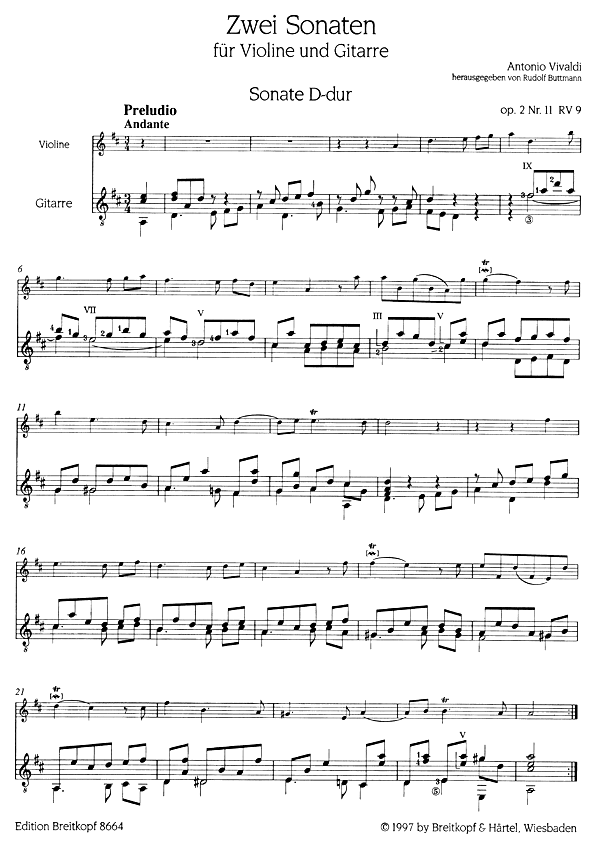 Nr. 11 D-dur RV 9 – Nr. 12 a-moll RV 32 bearbeitet von Rudolf Buttmann [Vl,Git]