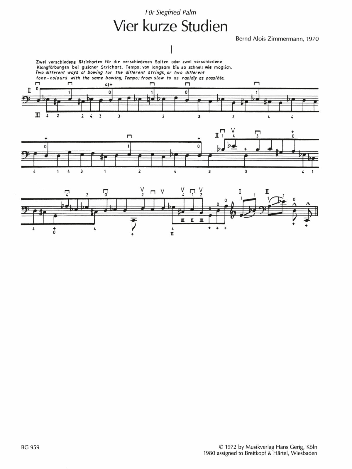 Die Vier kurzen Studien (1970) entstanden für den Cellisten Siegfried Palm, als Beitrag für dessen Sammelband „Pro Musica Nova - Studien zum Spielen Neuer Musik“.