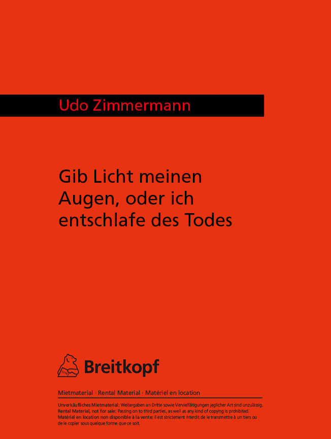 Udo Zimmermann (1943–2021) Gib Licht meinen Augen, oder ich entschlafe des Todes
