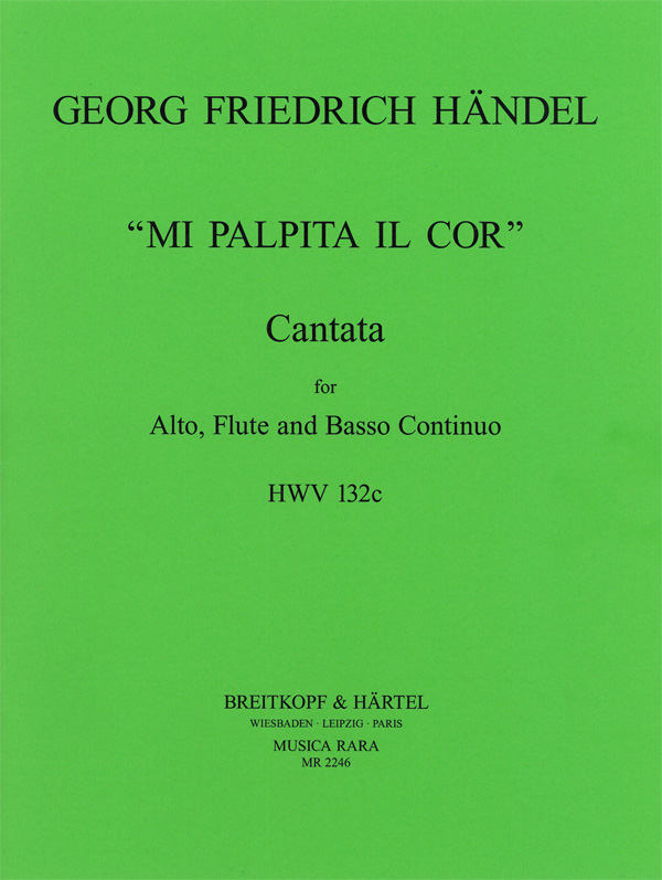 "Mi palpita il cor HWV 132" ist eine weltliche Kantate aus den Jahren 1706-1710, die der junge Händel in Italien verbrachte. Dieses Werk ist in drei verschiedenen Fassungen bekannt, die bereits im 19. Jahrhundert im Rahmen der Ausgabe der Händel-Gesellschaft veröffentlicht wurden. Die Neuausgabe bevorzugt die in mehreren zeitgenössischen Abschriften überlieferte Besetzung für tiefe Frauenstimme und obligate Flöte (HWV 132c).