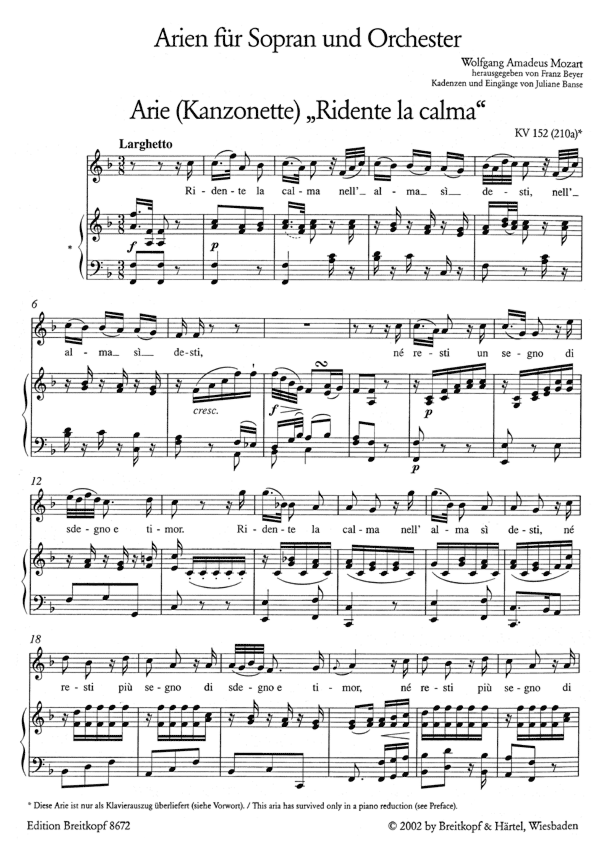 Band II sämtlicher Sopran-Konzertarien Mozarts enthält Arien, die Mozart für die großen Sängerinnen seiner Zeit schrieb, darunter "Nehmt meinen Dank, Ihr holden Gönner!" KV 383 und "Misera! dove son" KV 369. Sie bieten musikalische Kostbarkeiten, die auch aus vokaler und pädagogischer Hinsicht äußerst wertvoll sind, wie z. B. die von Mozart selbst verzierte Fassung der Arie "Alcandro, lo confessa" KV 294.