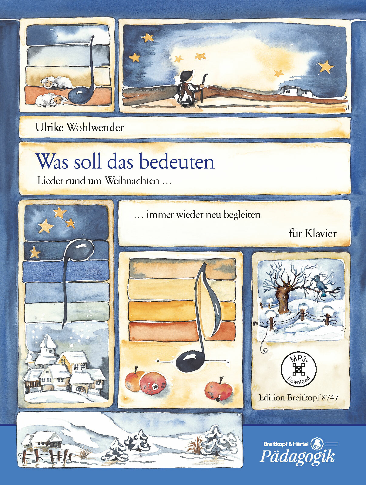 Das Heft enthält 36 bekannte Lieder von St. Martin bis Drei Könige. Dabei überschreitet die Auswahl den deutschen Sprachraum - mit „Jingle Bells“ und anderen beliebten Weihnachtsliedern aus aller Welt. Ulrike Wohlwender, bekannt durch „1 2 3 Klavier“, bietet zu jedem Lied bis zu 4 Begleitsätze in unterschiedlichen Schwierigkeitsgraden. Einfache Begleit-Bausteine (Bordune, Akkorde, Ostinati u. a. m.) für etwa die Hälfte der Lieder ermöglichen einen leichten Einstieg in die Kunst des Liedbegleitens. Durch die flexible Konzeption und die dezenten Illustrationen eignet sich „Was soll das bedeuten“ sehr gut für alle Altersstufen. Ein Heft zum Mitwachsen von Jahr zu Jahr!