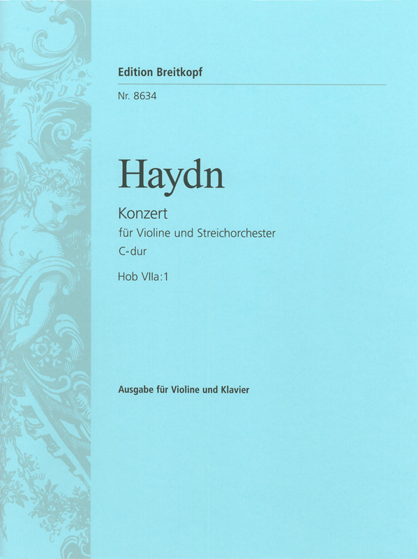 Das vorliegende C-dur-Konzert tritt im 18. und 19. Jahrhundert an verschiedenen signifikanten Stellen in Erscheinung – mehrfach dabei verflochten in die Verlagsgeschichte von Breitkopf & Härtel. Haydn komponierte das Werk um 1765 für den italienischen Geiger Luigi Tomasini – „fatto per il luigi“, so notierte er in seinem „Entwurf-Katalog“. Tomasini war schon vor Haydn an den Esterházyschen Hof gelangt und dort als erster Violinist, später als Konzertmeister tätig. Schon 1769 wurde das C-dur-Konzert zusammen mit dem Konzert Hob VII:4 in den erwähnten Breitkopf-Verzeichnissen aufgelistet. Elf Jahre später bot Johann Georg Westphal in Hamburg das C-dur-Konzert mit – wohl nicht authentischen – Hörnerstimmen an. Eine andere Erweiterung der Orchesterbesetzung weisen Stimmen aus dem Benediktinerstift Seitenstetten auf. Sie enthalten zwei Clarinopartien, die allerdings nicht auf dem Titelblatt vermerkt sind und vermutlich nachträglich geschrieben worden sind. Solange keine triftigen Hinweise und Quellenfunde vorliegen, muss beim C-dur-Konzert jedoch von einer reinen Streicherbesetzung ausgegangen werden. Eine bezifferte Bassstimme für den Continuospieler ist, wie bei Haydns Orchesterwerken in jener Zeit üblich, nicht überliefert. Dennoch sollte die Mitwirkung des Cembalos im Sinne der spätbarocken Tradition im jetzt neu erstellten Orchestermaterial keinesfalls fehlen. Walter Heinz Bernstein hat den Part aus seiner Stilkenntnis vergleichbarer Werke erstellt.